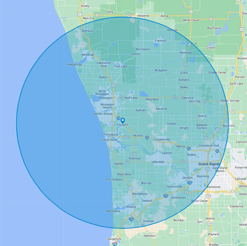 We typically work with 30 miles of Muskegon, but may consider locations further away for larger projects.
